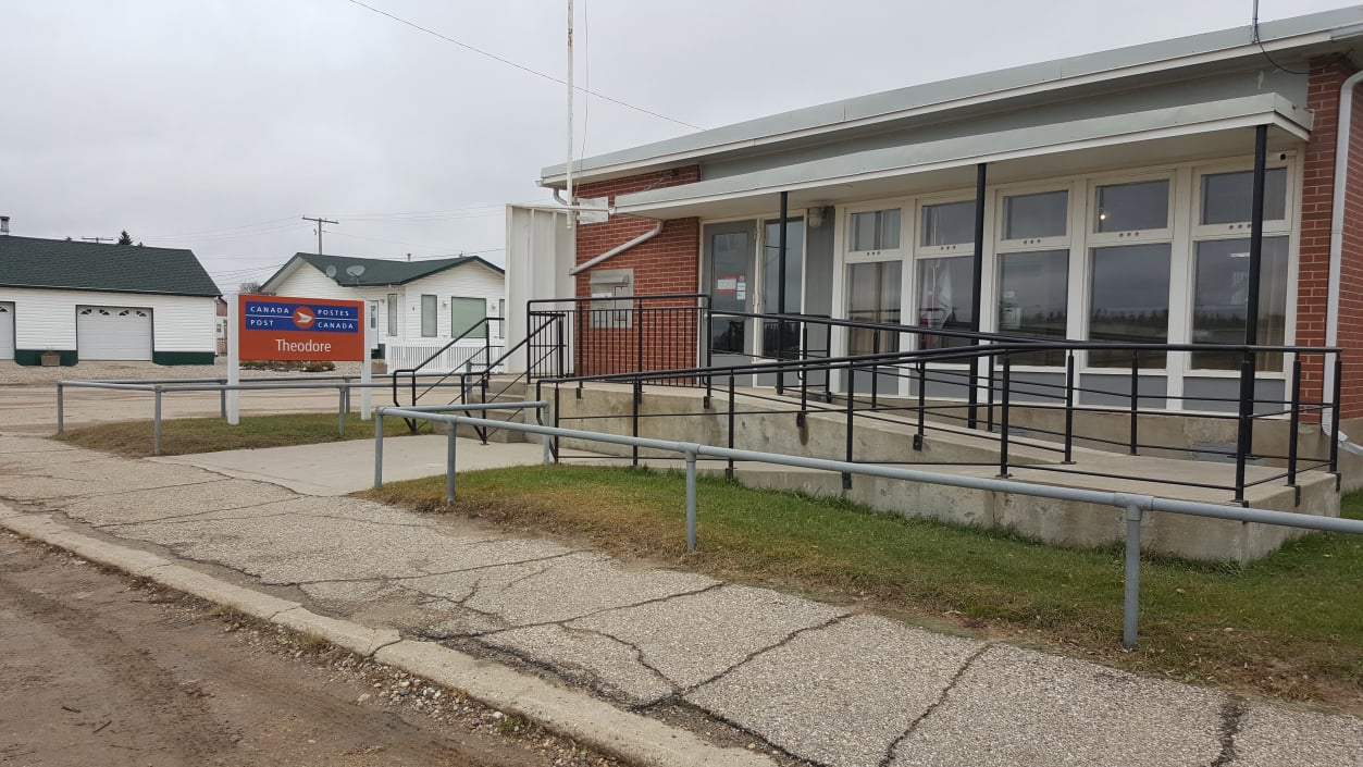Theodore Post office on Railway Ave. Open Mon - Fri 8am - 12noon/ 1 - 5pm